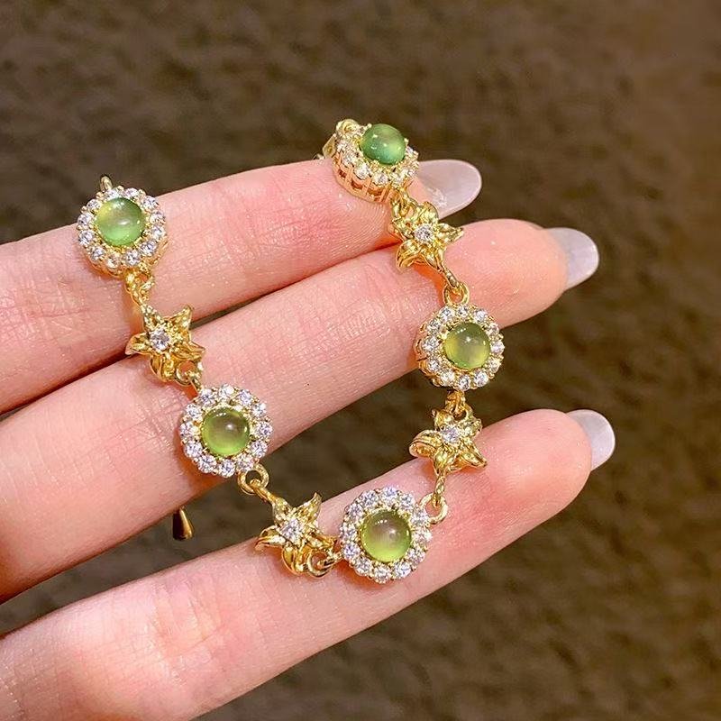 Green Jade Star Gold Bracelet with Sparkling Zircon Accents