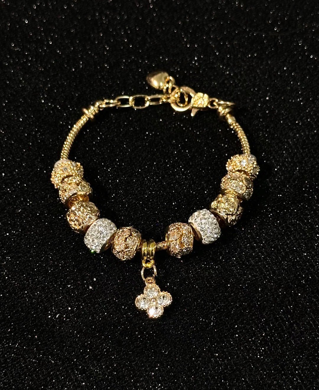 This retro-style bracelet features textured gold-plated copper beads, sparkling cubic zirconia accents, and a delicate clover charm for a luxe, vintage glow. Crafted from durable copper with a gold-plated finish, it stays shiny and eye-catching. The adjustable 15+5cm extension chain fits most wrist sizes, making it a chic accessory for daily outfits, date nights, or gifting to vintage jewelry lovers.
